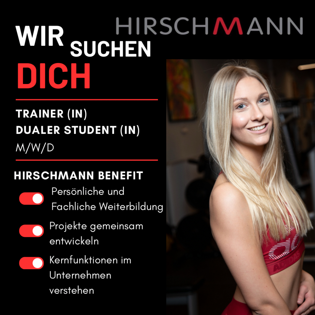Dann starte deine Karriere als dualer Student/ Trainer(in) in der Sport- & Gesundheitsbranche und werde das Herzstück der Hirschmann Fitnessanlagen in Selb.