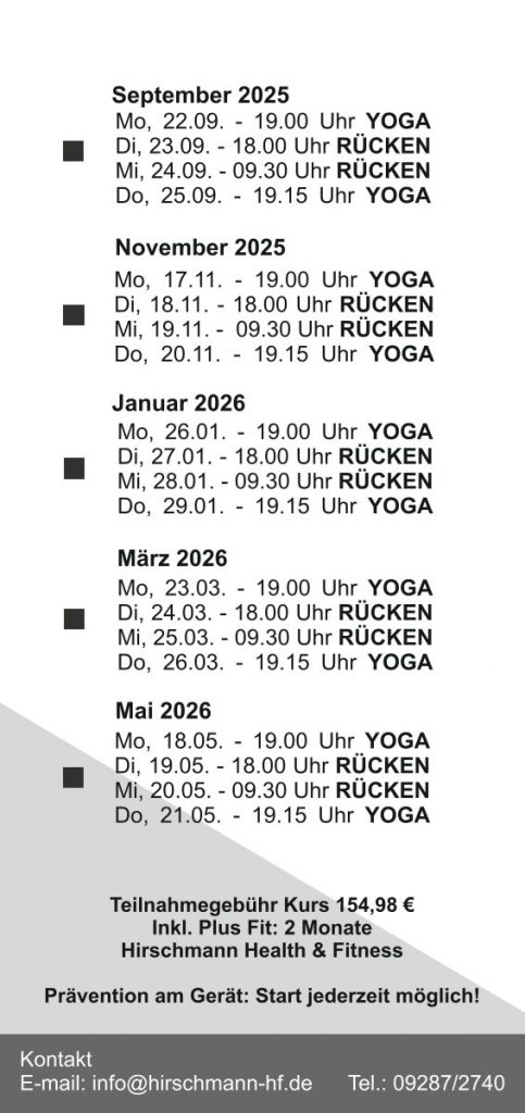 Unser Kurs “Prävention am Gerät” kostet für einen Zeitraum von 10 Wochen 154,98 € (davon werden bis zu 75 € von der Krankenkasse übernommen).
